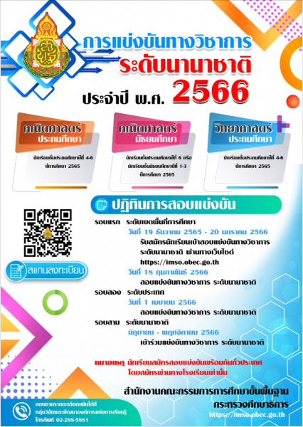 ประกาศ โครงการแข่งขันทางวิชาการด้านคณิตศาสตร์และวิทยาศาสตร์ ระดับนานาชาติ ประจำปี พ.ศ. 2566