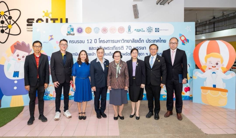 (วันที่ 22 มกราคม 2568) ณ อาคาร บร.5 คณะวิทยาศาสตร์และเทคโนโลยี มหาวิทยาลัยธรรมศาสตร์ ศูนย์รังสิต จ.ปทุมธานี : รองศาสตราจารย์ ดร.คุณหญิงสุมณฑา พรหมบุญ กรรมการมูลนิธิสมเด็จพระเทพรัตนราชสุดา เป็นประธานในพิธีเปิดงาน “ครบรอบ 12 ปี โครงการมหาวิทยาลัยเด็ก ประเทศไทย และเฉลิมพระเกียรติ 70 พรรษา สมเด็จพระกนิษฐาธิราชเจ้า กรมสมเด็จพระเทพรัตนราชสุดา ฯ สยามบรมราชกุมารี” โดยมี นางดวงสมร คล่องสารา ประธานคณะทำงานโครงการมหาวิทยาลัยเด็ก ประเทศไทย รองศาสตราจารย์ ดร.สุเพชร จิรขจรกุล คณบดีคณะวิทยาศาสตร์และเทคโนโลยี มหาวิทยาลัยธรรมศาสตร์ และ ดร.กัลยา อุดมวิทิต รองผู้อำนวยการสำนักงานพัฒนาวิทยาศาสตร์และเทคโนโลยีแห่งชาติ (สวทช.) ร่วมในพิธี โดยภายในงานมีการจัดกิจกรรมทดลองทางวิทยาศาสตร์สนุก ๆ ให้กับนักเรียนในพื้นที่ จ.ปทุมธานี เพื่อเสริมความรู้นอกห้องเรียน ซึ่งได้รับการสนับสนุนโดยมูลนิธินายห้างโรงปูนผู้หนึ่ง