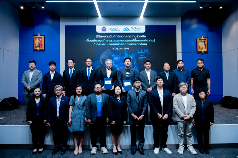 (วันที่ 6 มิถุนายน 2568) ที่ห้องแถลงข่าว ชั้น 1 อาคารพระจอมเกล้า กระทรวงการอุดมศึกษาวิทยาศาสตร์ วิจัย และนวัตกรรม (อว.) สำนักงานพัฒนาวิทยาศาสตร์และเทคโนโลยีแห่งชาติ โดยศูนย์เทคโนโลยีอิเล็กทรอนิกส์และคอมพิวเตอร์แห่งชาติ (เนคเทค) จัดงาน “Thai LLM และความท้าทายโครงสร้างพื้นฐานดิจิทัลของประเทศไทย” พร้อมทั้งพิธีลงนามบันทึกข้อตกลงความร่วมมือด้านการวิจัยและพัฒนาด้านปัญญาประดิษฐ์ เพื่อสนับสนุนกิจกรรมและการแลกเปลี่ยนองค์ความรู้ในการพัฒนาแบบจำลองภาษาขนาดใหญ่ (Large Language Model: LLM) โดยมีศาสตราจารย์ ดร.ชูกิจ ลิมปิจำนงค์ ผู้อำนวยการ สวทช. และ นายรัตนพล วงศ์นภาจันทร์ ประธานกรรมการบริหาร บริษัท สยาม เอไอ คอร์เปอเรชั่น จำกัด ร่วมลงนามบันทึกข้อตกลงความร่วมมือด้านการวิจัยและพัฒนาปัญญาประดิษฐ์ เพื่อสนับสนุนการพัฒนาแบบจำลองภาษาขนาดใหญ่ โดยเฉพาะ Thai LLM ที่เข้าใจบริบทและวัฒนธรรมไทยอย่างแท้จริง โดยมี นายณัฐพงษ์ ช่วยบำรุง Chief Technology Officer และดร.ชัย วุฒิวิวัฒน์ชัย ผู้อำนวยการ เนคเทค สวทช. ร่วมเป็นสักขีพยาน