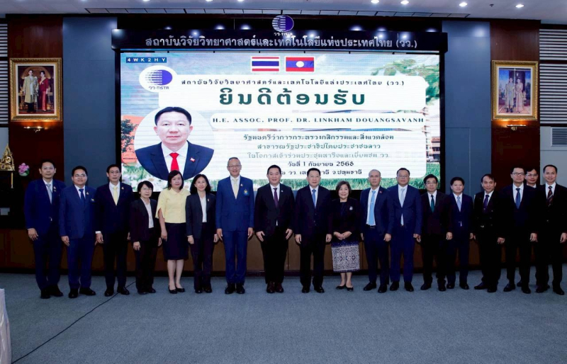 ผศ.ดร.วีรชัย อาจหาญ ผู้ว่าการ สถาบันวิจัยวิทยาศาสตร์และเทคโนโลยีแห่งประเทศไทย (วว.) กระทรวงการอุดมศึกษา วิทยาศาสตร์ วิจัยและนวัตกรรม (อว.) และคณะผู้บริหาร บุคลากร วว. ร่วมให้การต้อนรับ H.E. Assoc. Prof. Dr. Linkham Douangsavanh รัฐมนตรีว่าการกระทรวงกสิกรรมและสิ่งแวดล้อม สาธารณรัฐประชาธิปไตยประชาชนลาว (สปป.ลาว) พร้อมด้วย H.E. Ms. Busadee Santipitaks, ประธานเจ้าหน้าที่บริหาร สำนักงานเลขาธิการคณะกรรมาธิการแม่น้ำโขง (Mekong River Commission Secretariat : MRCS) และ ดร.สุรสีห์ กิตติมณฑล เลขาธิการสำนักงานทรัพยากรน้ำแห่งชาติ (สทนช.) ในฐานะสำนักเลขาธิการคณะกรรมการแม่น้ำโขงแห่งชาติไทย ซึ่งเป็นหน่วยงานกลางประสานงานฝ่ายไทยตามกรอบความร่วมมือคณะกรรมาธิการแม่น้ำโขง ในโอกาสเข้าร่วมประชุมหารือความร่วมมือด้านการวิจัยและพัฒนาทรัพยากรน้ำ โดย วว. และ สทนช. ได้ร่วมนำเสนอผลการดำเนินงานเพื่อเพิ่มคุณภาพชีวิตชุมชนลุ่มน้ำโขง และแนวทางบริหารจัดการลุ่มน้ำเจ้าพระยาใหญ่ พร้อมมาตรการรับมือฤดูฝน ภายใต้การสานสัมพันธ์ 75 ปี ความสัมพันธ์ทางการทูตระหว่างประเทศไทย กับ สปป.ลาว ในวันที่ 1 กันยายน 2568 ณ วว. เทคโนธานี คลองห้า จ.ปทุมธานี