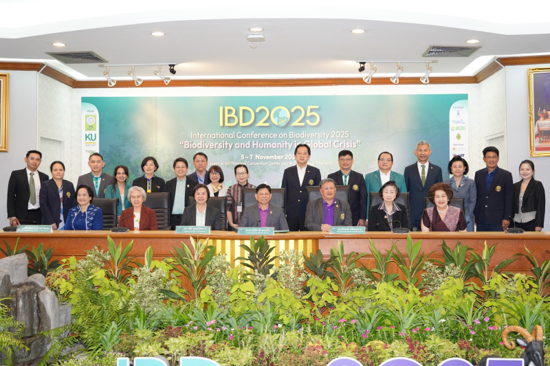 (22 ตุลาคม 2568) ณ อาคารสารนิเทศ 50 ปี มหาวิทยาลัยเกษตรศาสตร์ บางเขน กรุงเทพฯ: มหาวิทยาลัยเกษตรศาสตร์ พร้อมด้วย สำนักงานการวิจัยแห่งชาติ (วช.) และพันธมิตร โดยสำนักงานพัฒนาวิทยาศาสตร์และเทคโนโลยีแห่งชาติ (สวทช.) สำนักงานพัฒนาเศรษฐกิจจากฐานชีวภาพ (องค์การมหาชน) สถาบันเทคโนโลยีจิตรลดา และมูลนิธิสวนหลวง ร.9 เข้าร่วมจัดงานแถลงข่าวการจัดประชุมวิชาการนานาชาติด้านความหลากหลายทางชีวภาพ (International Conference on Biodiversity หรือ IBD2025) ภายใต้หัวข้อ“Biodiversity and Humanity in Global Crisis” หรือ “ความหลากหลายทางชีวภาพกับมนุษยชาติ ในยุควิกฤตโลก” ระหว่างวันที่ 5-7 พฤศจิกายน 2568 ณ ศูนย์การประชุมแห่งชาติสิริกิติ์ เพื่อเป็นการเฉลิมพระเกียรติ สมเด็จพระกนิษฐาธิราชเจ้า กรมสมเด็จพระเทพรัตนราชสุดาฯ สยามบรมราชกุมารี ทรงเจริญพระชนมายุ 70 พรรษา ในปี พ.ศ.2568 และเป็นเวทีแลกเปลี่ยนเรียนรู้ระหว่างประชาคมนักวิจัยของไทยและต่างประเทศ ด้านความหลากหลายทางชีวภาพในมิติต่าง ๆ ทั้งงานวิจัยและวิชาการ การอนุรักษ์ การป้องกันการฟื้นฟู และการใช้ประโยชน์จากความหลากหลายทางชีวภาพ ตลอดจนเพื่อหาแนวทางความร่วมมือในระดับสากล โดยได้รับพระมหากรุณาธิคุณจาก สมเด็จพระกนิษฐาธิราชเจ้า กรมสมเด็จพระเทพรัตนราชสุดาฯ สยามบรมราชกุมารี เสด็จ ฯ เป็นประธานพิธีเปิดและบรรยายพิเศษ โอกาสนี้คณะผู้จัดงานได้จัดทำวีดิทัศน์เฉลิมพระเกียรติชุด “เจ้าฟ้านักความหลากหลายทางชีวภาพ” ถ่ายทอดพระอัจฉริยภาพและพระมหากรุณาธิคุณในการ อนุรักษ์ ฟื้นฟู ตลอดจนองค์ความรู้ด้านความหลากหลายทางชีวภาพ เพื่อสร้างแรงบันดาลใจและให้แนวทางปฏิบัติที่เป็นรูปธรรม