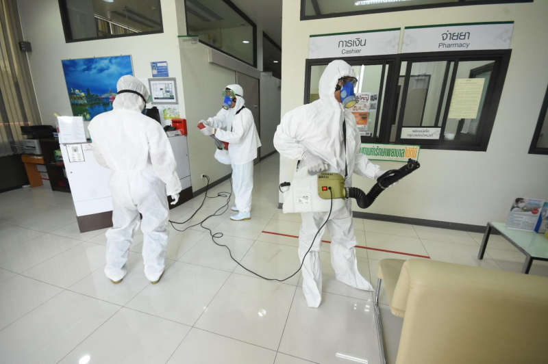 โดยในวันที่ 22 ธ.ค. 63 เจ้าหน้าที่ฝ่ายอาคารและความปลอดภัย สวทช. ได้ดำเนินการร่วมกับหน่วยปฏิบัติการป้องกันเชื้อไวรัส เทศบาลเมืองท่าโขลง จ.ปทุมธานี เข้ามาดำเนินการฉีดพ่นฆ่าเชื้อโรค(Fumigation) บริเวณทางเดินหน้าห้องทำงานผู้ป่วยและบริเวณโถงทางเดินชั้น 3 รวมทั้งได้ให้คำแนะนำวิธีการเข้าทำความสะอาดกับเจ้าหน้าที่ทำความสะอาดประจำอาคารด้วย นอกจากนี้ สวทช. ยังได้รับความอนุเคราะห์จากบริษัท คีนน์ จำกัด สนับสนุนผลิตภัณฑ์น้ำยาฆ่าเชื้อ Germ Killer Blood, Scale and Oil Remover ที่ได้รับการขึ้นบัญชีนวัตกรรมไทย โดยการสนับสนุนจาก Kill & Klean Team ในการฉีดพ่นสเปรย์ฆ่าเชื้อในอาคารต่างๆ ที่ได้มาตรฐานระดับโลก ในพื้นที่อุทยานวิทยาศาสตร์ประเทศไทยทุกอาคาร เช่น ห้องปฏิบัติการ ห้องประชุมและโถงทางเดินเข้าห้องปฏิบัติการ ของอาคารกลุ่มนวัตกรรม 2 (INC2) อาคารศูนย์ประชุมอุทยานวิทยาศาสตร์ประเทศไทย (CC) อาคารบ้านวิทยาศาสตร์สิรินธร และพื้นที่สาธารณะภายในอุทยานฯ อาทิ คลินิคของโรงพยาบาล ห้องอาหาร ห้องประชุม ร้านค้าต่างๆ ร่วมกับการใช้หุ่นยนต์ฆ่าเชื้อโรคด้วยแสงยูวีซี (Girm Zaber UV-C Sterilizer) ซึ่งสามารถใช้แสงยูวีซีกำจัดเชื้อโรคในพื้นที่เฉพาะและจุดเสี่ยงต่างๆ ได้อย่างมีประสิทธิภาพ โดยดำเนินการตามคำแนะนำจากเจ้าหน้าที่กระทรวงสาธารณสุข (สธ.)