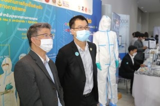 วันที่ 10 มีนาคม 2564 กรมวิทยาศาสตร์บริการ (วศ.) กระทรวงการอุดมศึกษา วิทยาศาสตร์ วิจัยและนวัตกรรม โดย ดร.กนิษฐ์ ตะปะสา ผู้อำนวยการกองวัสดุวิศวกรรม พร้อมคณะ นำผลงานนวัตกรรมชุด PPE ป้องกันการติดเชื้อสำหรับบุคลากรทางการแพทย์ ร่วมจัดแสดงในงาน " Thailand International Health Expo 2021" มุ่งยกระดับประเทศไทยให้เป็นศูนย์กลางสุขภาพนานาชาติ และขับเคลื่อนเศรษฐกิจสุขภาพของประเทศ โดยมีนายอนุทิน ชาญวีรกูล รองนายกรัฐมนตรีและรัฐมนตรีว่าการกระทรวงสาธารณสุข เป็นประธานและเยี่ยมชมนิทรรศการ ณ ห้องประชุม 1 ชั้น 9 อาคารกรมสนับสนุนบริการสุขภาพ กระทรวงสาธารณสุข