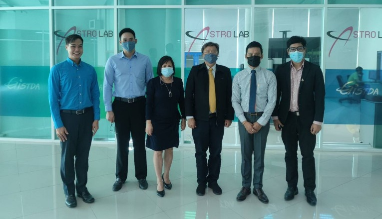 ในวันที่ 8 มิถุนายน 2564 ณ อุทยานรังสรรค์นวัตกรรมอวกาศ อ.ศรีราชา จ.ชลบุรี หน่วยงานภายใต้การกำกับของสำนักงานพัฒนาเทคโนโลยีอวกาศและภูมิสารสนเทศ สทอภ. (GISTDA) ให้การต้อนรับรองศาสตราจารย์ ดร.สุมนต์ สกลไชย นายกสภามหาวิทยาลัยบูรพา พร้อมด้วย รองศาสตราจารย์ ดร.วิทวัส แจ้งเอี่ยม กรรมการสภามหาวิทยาลัยบูรพา และนายพีรพัฒน์ มั่งคั่ง ผู้อำนวยการสำนักบริการวิชาการ เข้าเยี่ยมชมภารกิจนวัตกรรมและเทคโนโลยีด้านอากาศยานและอวกาศของ GISTDA โดย ดร.ดำรงค์ฤทธิ์ เนียมหมวด ปฏิบัติงานรองผู้อำนวยการสำนักงานพัฒนาเทคโนโลยีอวกาศและภูมิสารสนเทศ และนางสาวปราณปริยา วงค์ษาผู้อำนวยการสำนักพัฒนาและถ่ายทอดองค์ความรู้ให้การต้อนรับคณะนำชมสถานที่และแลกเปลี่ยนองค์ความรู้ทางนวัตกรรมอวกาศที่น่าสนใจ นำมาประยุกต์ใช้งานในด้านการพัฒนาหลักสูตร การเรียน การสอนให้มีประสิทธิภาพเพิ่มขึ้น เพื่อการร่วมมือในการพัฒนาบุคลากรเข้าสู่เทคโนโลยีและอุตสาหกรรมด้านอากาศยานและอวกาศในอนาคตร่วมกันอีกด้วย