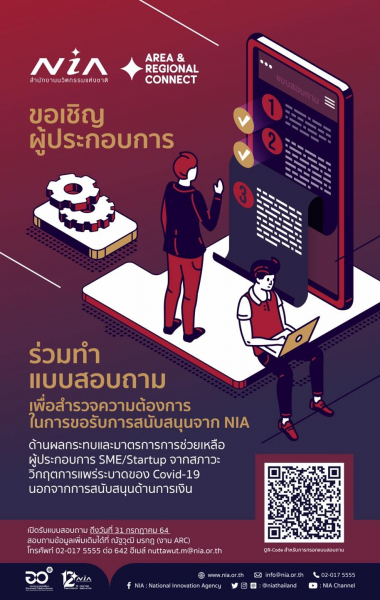 NIA ขอเชิญผู้ประกอบการ SMEs/Startup ร่วมตอบแบบสอบถาม เพื่อออกแบบกลไกการสนับสนุนและช่วยเหลือในสถานการณ์การแพร่ระบาดของไวรัสโควิด -19 เพิ่มเติมจากการสนับสนุนด้านการเงิน
