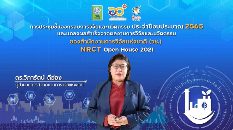 วันที่ 18 กรกฎาคม 2564 สำนักงานการวิจัยแห่งชาติ (วช.) กระทรวงการอุดมศึกษา วิทยาศาสตร์ วิจัยและนวัตกรรม จัดการประชุมชี้แจงกรอบการวิจัยและนวัตกรรมประจำปีงบประมาณ 2565 และแถลงผลสำเร็จจากการวิจัยและนวัตกรรมของสำนักงานการวิจัยแห่งชาติ (วช.) NRCT Open House 2021 “วิจัยและนวัตกรรมในประเด็นท้าทายของประเทศ” ระหว่างวันที่ 18 - 25 กรกฎาคม 2564 ในรูปแบบออนไลน์ผ่านวีดีทัศน์ทางไกล (VDO Conference) ด้วยระบบ Zoom และการถ่ายทอดสด (Live Steaming) ผ่าน Facebook NRCT เพื่อชี้แจงกรอบการวิจัยและนวัตกรรม ประจำปีงบประมาณ 2565 ของ วช. และแนวทางการเขียนและพิจารณาข้อเสนอการวิจัยและนวัตกรรม รวมทั้งแถลงผลสำเร็จจากการวิจัยและนวัตกรรมและเป็นเวทีแลกเปลี่ยนประสบการณ์การเขียนข้อเสนอการวิจัยและนวัตกรรมและการยื่นขอทุน วช. โดยมี ดร.วิภารัตน์ ดีอ่อง ผู้อำนวยการสำนักงานการวิจัยแห่งชาติ เป็นประธานเปิดการประชุมออนไลน์ กล่าวว่า สำนักงานการวิจัยแห่งชาติ (วช.) เป็นหน่วยบริหารจัดการทุนวิจัยและนวัตกรรม หรือ PMU (Program Management Unit) บริหารงบประมาณวิจัยด้าน ววน. ตามกรอบนโยบายและยุทธศาสตร์การอุดมศึกษา วิทยาศาสตร์ วิจัยและนวัตกรรม (อววน.) ที่มีเป้าหมายและผลสัมฤทธิ์ที่สำคัญ (Objectives and Key Results: OKR) ชัดเจน โดยภายในการประชุมดังกล่าว มีการชี้แจงกรอบการวิจัยและนวัตกรรม ด้านทรัพยากรธรรมชาติและสิ่งแวดล้อม ประจำปีงบประมาณ 2565 ภายใต้โปรแกรมที่ 7 แก้ไขปัญหาท้าทายและยกระดับการพัฒนาอย่างยั่งยืนด้านทรัพยากรธรรมชาติ สิ่งแวดล้อมและการเกษตร