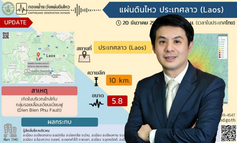ศาสตราจารย์ ดร.อมร พิมานมาศ นายกสมาคมวิศวกรโครงสร้างไทย และนักวิจัยชุดโครงการลดภัยพิบัติแผ่นดินไหวในประเทศไทย ภายใต้การสนับสนุนของสำนักงานคณะกรรมการส่งเสริมวิทยาศาสตร์ วิจัยและนวัตกรรม (สกสว.) และสำนักงานการวิจัยแห่งชาติ (วช.) กระทรวงการอุดมศึกษาวิทยาศาสตร์ วิจัยและนวัตกรรม เปิดเผยว่า จากเหตุการณ์แผ่นดินไหวขนาด 5.8 ที่เกิดขึ้นที่ประเทศลาวเมื่อเช้ามืดของวันที่ 20 ธันวาคม 2564 ได้ส่งผลให้หลายจังหวัดในภาคเหนือและภาคตะวันออกเฉียงเหนือของประเทศไทยรับรู้ถึงแรงสั่นสะเทือนได้ โดยพบร่องรอยกระเบื้องหลังคาพระอุโบสถและองค์พระประธานจตุรพักตร์ 4 ด้าน ซึ่งตั้งประดิษฐานอยู่ภายในพระอุโบสถวัดภูมินทร์ พบรอยร้าวขยายเพิ่มจากความเสียหายแผ่นดินไหวครั้งก่อน 6.4 ริกเตอร์เมื่อปี 2562 และพบรอยร้าวใหม่อีกหลายจุดเป็นแนวยาวจนมองเห็นปูนภายในอย่างเห็นได้ชัด