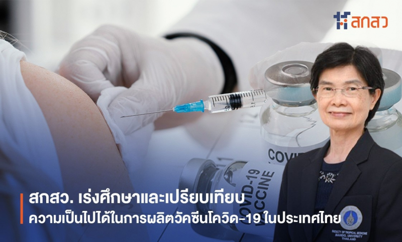 เมื่อวันที่ 19 มกราคม 2565 สำนักงานคณะกรรมการส่งเสริมวิทยาศาสตร์ วิจัยและนวัตกรรม (สกสว.) ร่วมกับผู้ทรงคุณวุฒิจัดการประชุมนำเสนอความก้าวหน้า “การศึกษาและเปรียบเทียบความเป็นไปได้ในการผลิตวัคซีนโควิด-19 ในประเทศไทย” เพื่อวิเคราะห์ความสามารถของกระบวนการผลิตวัคซีนในรูปแบบโครงสร้างต่าง ๆ ของประเทศ และทำการจัดลำดับความสำคัญของชนิดวัคซีน เพื่อเป็นข้อมูลสนับสนุนให้ภาครัฐสามารถลงทุนด้านวัคซีนได้อย่างมีประสิทธิภาพ