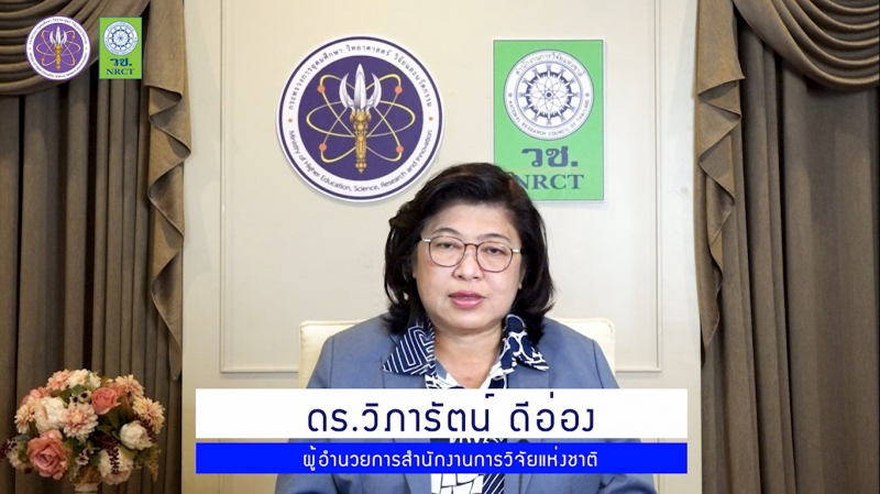 ดร.วิภารัตน์ ดีอ่อง ผู้อำนวยการสำนักงานการวิจัยแห่งชาติ กล่าวว่า วช. ภายใต้กระทรวง อว. ในฐานะหน่วยบริหารจัดการทุนวิจัยและนวัตกรรมของประเทศ มีแผนงานวิจัยและนวัตกรรมที่เกี่ยวข้องกับด้านทรัพยากรธรรมชาติและสิ่งแวดล้อม ได้แก่ แผน P15 N27 ด้านมลพิษในภาคอุตสาหกรรม แผน P15 N28 ด้านมลพิษในภาคเมืองและชุมชน และแผน P16 N31 ด้านการเปลี่ยนแปลงสภาพภูมิอากาศ โดยได้ดำเนินการตามยุทธศาสตร์ของกองทุน ววน. ที่มุ่งมั่นพัฒนาและเร่ง แก้ไขปัญหาทรัพยากรธรรมชาติและสิ่งแวดล้อม โดยมุ่งเน้นการบริโภคอย่างยั่งยืน และการเป็นสังคมคาร์บอนต่ำที่มีเป้าหมายเพื่อพัฒนาและเร่งแก้ไขปัญหาทรัพยากรธรรมชาติและสิ่งแวดล้อม โดยการใช้ประโยชน์ผลงานวิจัยและนวัตกรรมของ วช. ซึ่งมีกลไกประสานกันระหว่างด้านผู้ใช้ประโยชน์และด้านผู้ผลิต โดยมี Demand-Supply Partnership เป็นความร่วมมือในการสร้างผลประโยชน์ร่วมและมีการใช้ประโยชน์ผลงานวิจัยและนวัตกรรมเชิงเศรษฐกิจ สังคมและชุมชน