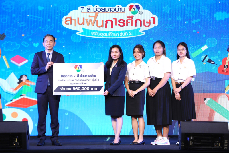โครงการ 7 สี ช่วยชาวบ้าน สานฝันการศึกษา “ระดับอุดมศึกษา” รุ่นที่ 2 รับสมัครนักเรียนที่มีความประพฤติดี ขาดแคลนทุนทรัพย์ และสามารถสอบผ่านการคัดเลือกเข้าศึกษาในสถาบันอุดมศึกษาของรัฐ สังกัดกระทรวง อว. โดยได้ดำเนินการมอบทุนการศึกษา จำนวน 24 ทุนๆ ละ 40,000 บาท รวมจำนวนทั้งสิ้น 960,000 บาท ให้แก่สำนักงานปลัดกระทรวง อว. เพื่อดำเนินการเบิกจ่ายให้แก่ผู้รับทุนผ่านสถาบันอุดมศึกษา ในกลุ่มวิชาพื้นฐานด้านการช่วยเหลือสังคม และกลุ่มวิชาพื้นฐานด้านธุรกิจสื่อสารมวลชน ในปีการศึกษา 2566