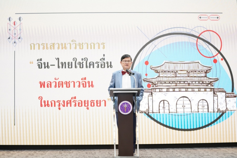 รองศาสตราจารย์พาสิษธิ์ หล่อธีรพงศ์ ที่ปรึกษาด้านวิทยาศาสตร์และเทคโนโลยี กล่าวว่า การจัดเสวนาในครั้งนี้เป็นครั้งที่ 2 ที่มาพูดคุยในเรื่องเกี่ยวกับกรุงศรีอยุธยา การเสวนาในครั้งแรกนั้นเป็นเรื่องราวของความหลากหลายในอยุธยาทั้งมิติในเรื่องประวัติศาสตร์ สังคม และวัฒนธรรม ปรากฏการณ์ต่างๆ รวมถึงโบราณคดี โบราณวัตถุ ที่สามารถพิสูจน์ทราบด้วยการใช้วิทยาศาสตร์ เทคโนโลยี ประวัติศาสตร์ไม่ใช่วิชาของอดีต แต่เป็นวิชาที่เป็นรอยต่อระหว่างเวลา ศิลปะในยุคใดๆ ถือเป็นภาพสะท้อนและแสดงพฤติกรรมทางสังคมของมนุษย์ในยุคนั้นได้เป็นอย่างดี ดังนั้นงานศิลปกรรมจึงไม่ใช่แค่รูปแบบและขวากหนาม แต่เป็นเครื่องธำรงความรู้และภูมิปัญญาได้เป็นอย่างดี การเสวนาในวันนี้เราจะขยับกรุงศรีอยุธยาต่อเป็นครั้งที่สอง ซึ่งจะเจาะลึกไปที่ความสัมพันธ์ระหว่างประเทศไทยและประเทศจีน โดยใช้หัวข้อ จีน-ไทยใช่ใครอื่น : พลวัตชาวจีนในกรุงศรีอยุธยา ซึ่งจะเป็นการเจาะลึกในประเด็นทางวัฒนธรรมและการค้าขาย ซึ่งจีนเป็นประเทศที่มีอิทธิพลต่อเราทั้งทางด้านการค้าการทูต การทหาร และวิทยาศาสตร์และเทคโนโลยี ข้อมูลที่จะได้รับฟังในวันนี้จะเป็นประโยชน์อย่างยิ่งกับผู้ที่เข้าร่วมสัมมนาทั้งภาครัฐ ภาคประชาชน และภาคเอกชน
