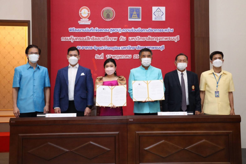 เมื่อวันที่ 17 พ.ค. ที่มหาวิทยาลัยกรุงเทพธนบุรี (มกธ.) คณะนิติศาสตร์ มหาวิทยาลัยกรุงเทพธนบุรี ร่วมกับ กรมคุ้มครองสิทธิและเสรีภาพ กระทรวงยุติธรรม ลงนามบันทึกข้อตกลงว่าด้วยความร่วมมือทางวิชาการระหว่างกรมคุ้มครองสิทธิและเสรีภาพกับมหาวิทยาลัยกรุงเทพธนบุรี โดยนายเรืองศักดิ์ สุวารี อธิบดีกรมคุ้มครองสิทธิและเสรีภาพ และ รศ.ดร.บังอร เบ็ญจาธิกุล อธิการบดีมหาวิทยาลัยกรุงเทพธนบุรี ร่วมทำพิธีเปิด “ศูนย์ไกล่เกลี่ยข้อพิพาทภาคประชาชน” ที่ชั้น อาคารซีซี อาเซียน เพื่อส่งเสริม พัฒนาความร่วมมือทางวิชาการที่เกี่ยวข้องร่วมกัน อาทิ การจัดอบรมเพื่อขึ้นทะเบียนเป็นผู้ไกล่เกลี่ยภาคประชาชน การอบรมให้ความรู้กับประชาชนที่สนใจในเรื่องการไกล่เกลี่ย เป็นต้น ซึ่งความร่วมมือทางวิชาการดังกล่าวของมหาวิทยาลัยฯ ถือเป็นบทบาทหน้าที่ตามภารกิจที่สำคัญประการหนึ่งในด้านการให้บริการวิชาการแก่สังคม โดยมี รศ.ดร.บังอร เบ็ญจาธิกุล อธิการบดีมหาวิทยาลัยกรุงเทพธนบุรี นายเรืองศักดิ์ สุวารี อธิบดีกรมคุ้มครองสิทธิและเสรีภาพ กระทรวงยุติธรรม รศ.(พิเศษ) ดร.ดวงฤทธิ์ เบ็ญจาธิกุล ชัยรุ่งเรือง เลขานุการรัฐมนตรีว่าการและโฆษกกระทรวง กระทรวงการอุดมศึกษา วิทยาศาสตร์ วิจัยและนวัตกรรม (อว.) และ ผศ.ดร.วิทยา เบ็ญจาธิกุล รองอธิการบดีฝ่ายบริหารและคณบดีคณะนิติศาสตร์ มหาวิทยาลัยกรุงเทพธนบุรี (มกธ.) รวมทั้งผู้นำชุมชน 17 ในเขตทวีวัฒนาเข้าร่วมงาน