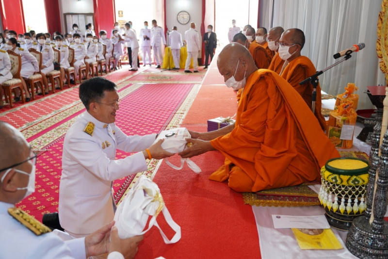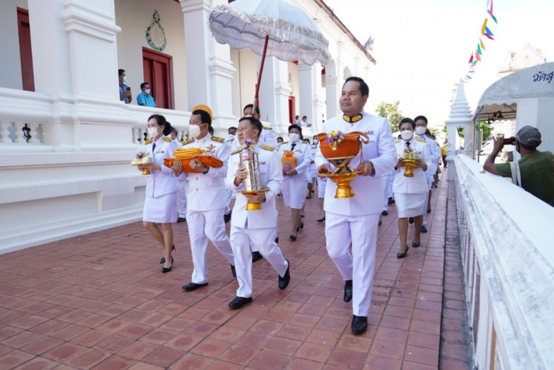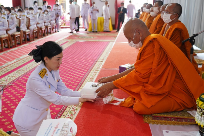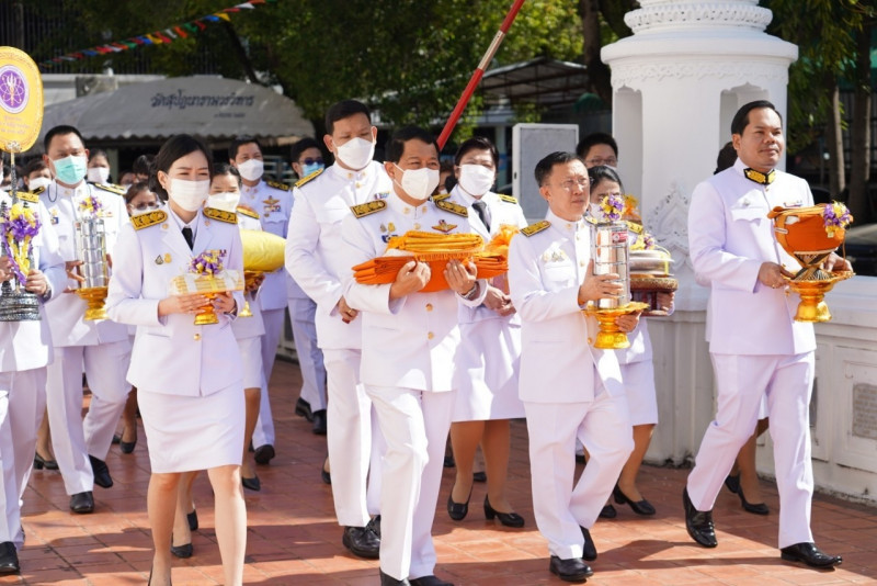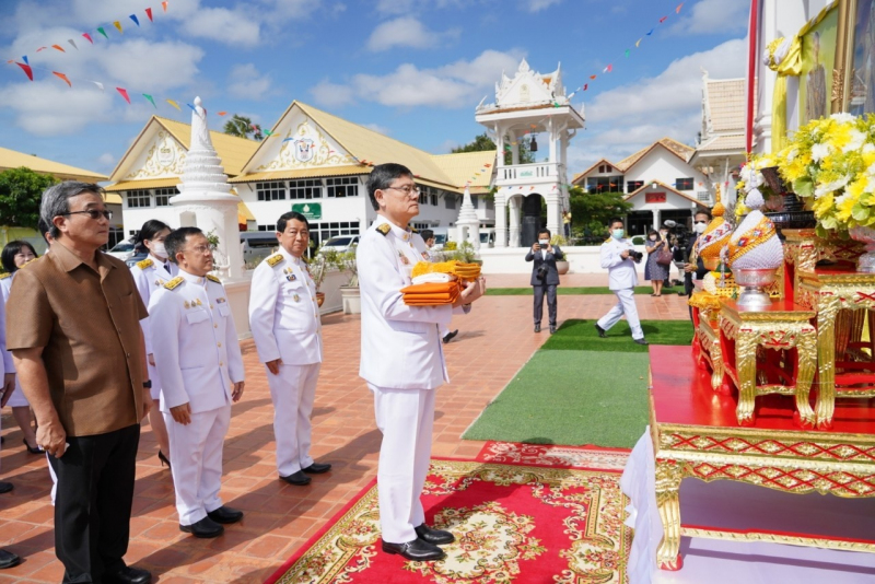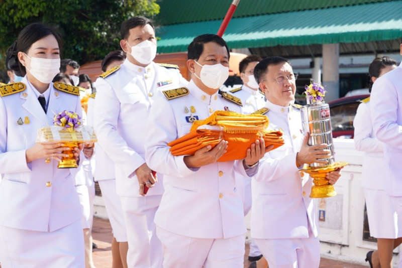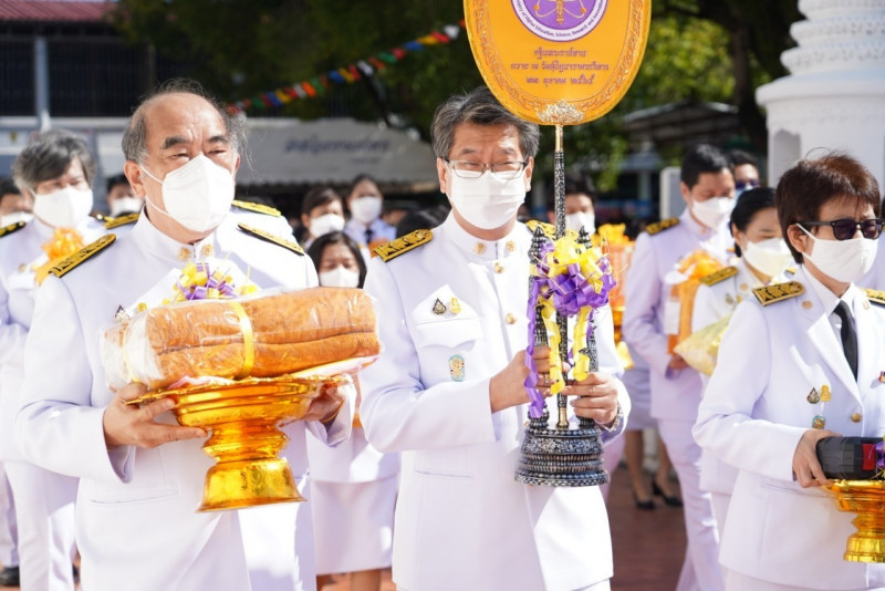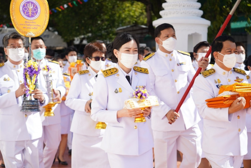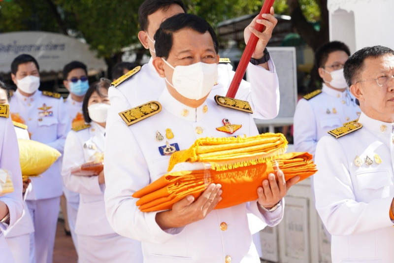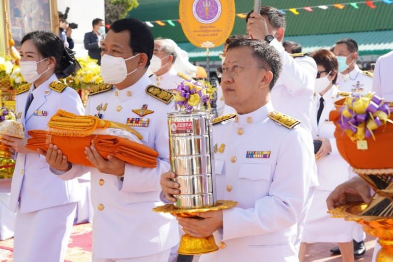 เมื่อเดินทางถึง รัฐมนตรีว่าการกระทรวงการอุดมศึกษาฯ ถวายความเคารพพระบรมฉายาลักษณ์พระบาทสมเด็จพระเจ้าอยู่หัว ก่อนหยิบผ้าพระกฐินพระราชทานจากพาน เดินเข้าสู่พระอุโบสถไปยังโต๊ะหน้าพระสงฆ์วางผ้าพระกฐินบนพานแว่นฟ้า แล้วเดินไปยังโต๊ะหมู่บูชาหน้าพระประธาน จุดธูปเทียนบูชาพระรัตนตรัย จากนั้นถวายเครื่องบริวารกฐิน ผู้บริหารกระทรวง อว. ถวายเครื่องไทยธรรมแด่พระสงฆ์ โดยยอดเงินที่ถวายผ้าพระกฐินพระราชทานกระทรวงการอุดมศึกษาวิทยาศาสตร์ วิจัยและนวัตกรรม ประจำปี 2565 เป็นจำนวนเงินทั้งสิ้น จำนวน 1,768,763.99 บาท