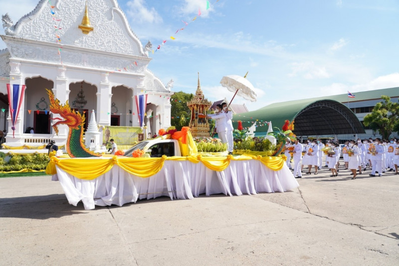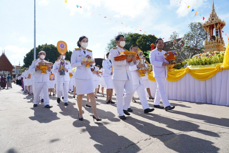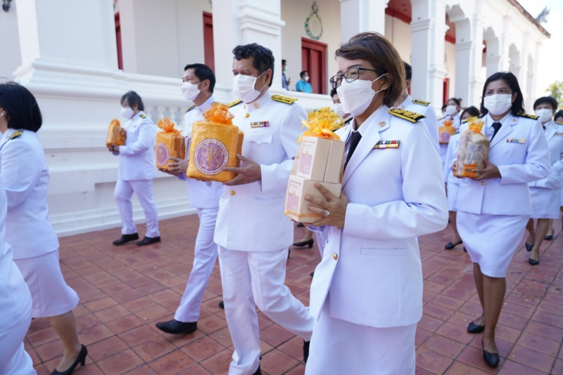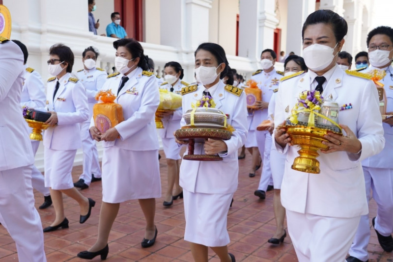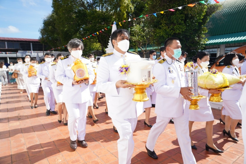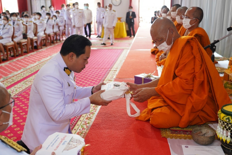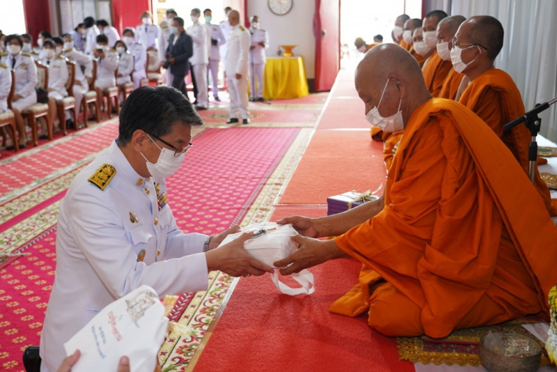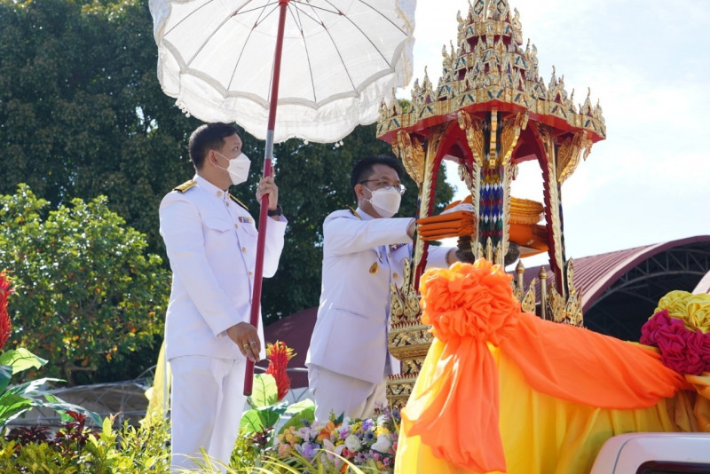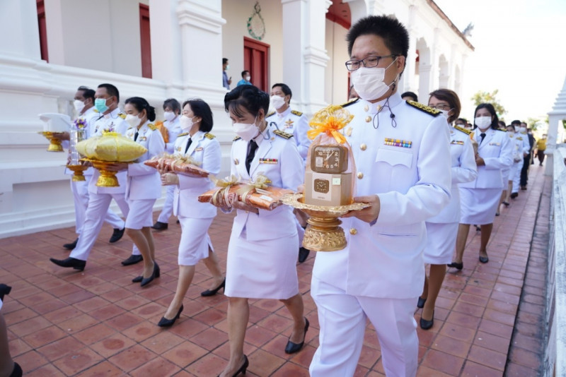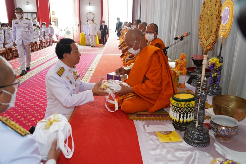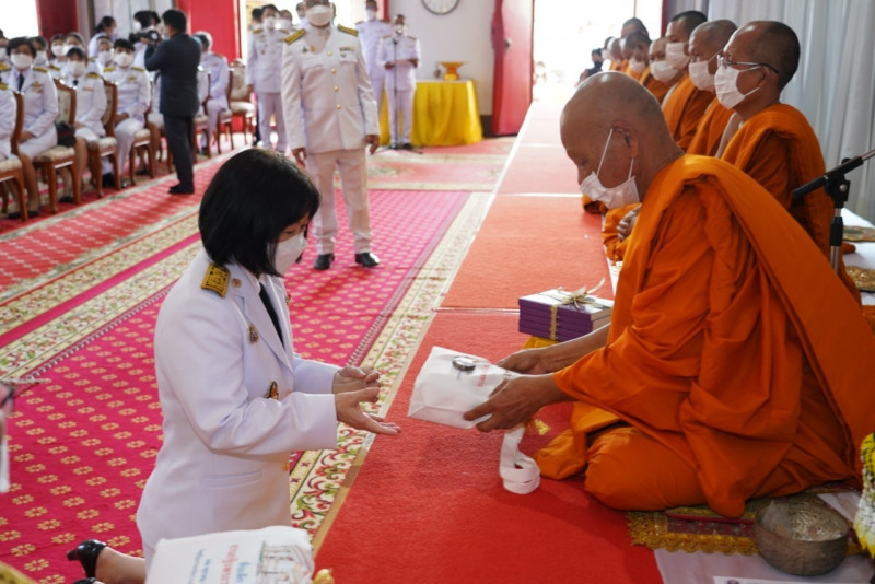 เมื่อเดินทางถึง รัฐมนตรีว่าการกระทรวงการอุดมศึกษาฯ ถวายความเคารพพระบรมฉายาลักษณ์พระบาทสมเด็จพระเจ้าอยู่หัว ก่อนหยิบผ้าพระกฐินพระราชทานจากพาน เดินเข้าสู่พระอุโบสถไปยังโต๊ะหน้าพระสงฆ์วางผ้าพระกฐินบนพานแว่นฟ้า แล้วเดินไปยังโต๊ะหมู่บูชาหน้าพระประธาน จุดธูปเทียนบูชาพระรัตนตรัย จากนั้นถวายเครื่องบริวารกฐิน ผู้บริหารกระทรวง อว. ถวายเครื่องไทยธรรมแด่พระสงฆ์ โดยยอดเงินที่ถวายผ้าพระกฐินพระราชทานกระทรวงการอุดมศึกษาวิทยาศาสตร์ วิจัยและนวัตกรรม ประจำปี 2565 เป็นจำนวนเงินทั้งสิ้น จำนวน 1,768,763.99 บาท