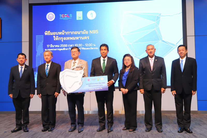 อว. มอบหน้ากากอนามัยชนิด N95 ให้กรุงเทพมหานคร 10,000 ชิ้น ผลงานวิจัยฝีมือคนไทย มีประสิทธิภาพกรองฝุ่นละอองขนาดเล็ก PM 2.5 ป้องกันเชื้อโรค แนบกระชับกับใบหน้า ปลอดภัย ไม่ระคายเคืองและแพ้ต่อผิวหนัง ใช้ป้องกันสารคัดหลั่ง ลดความเสี่ยงการติดเชื้อทางการแพทย์ได้ “เอนก” ชี้เป็นผลงานโดยคนไทย เพื่อคนไทย พร้อมหนุนต่อยอดสู่เชิงพาณิชย์ ด้าน “ชัชชาติ” เล็งจัดสรรงบ กทม. จัดซื้อหน้ากากฯ และนวัตกรรมฝีมือคนไทย