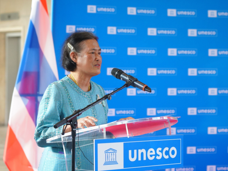 สมเด็จพระกนิษฐาธิราชเจ้า กรมสมเด็จพระเทพรัตนราชสุดาฯ สยามบรมราชกุมารี ทรงเปิดนิทรรศการเทิดพระเกียรติสมเด็จพระเจ้าพี่นางเธอ เจ้าฟ้ากัลยาณิวัฒนา กรมหลวงนราธิวาสราชนครินทร์ เนื่องในโอกาสเฉลิมฉลองครบรอบ 100 ปี วันประสูติฯ โดยมี ศ.(พิเศษ) ดร.เอนก เหล่าธรรมทัศน์ รัฐมนตรีว่าการกระทรวงการอุดมศึกษา วิทยาศาสตร์ วิจัยและนวัตกรรม (อว.) และ ศ.ดร.นพ.สิริฤกษ์ ทรงศิวิไล ปลัดกระทรวง อว. ร่วมรับเสด็จ ณ สำนักงานใหญ่ UNESCO กรุงปารีส