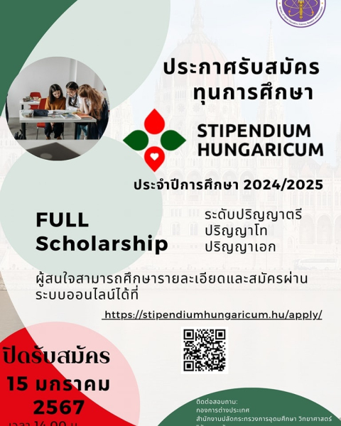 ประกาศ ทุนการศึกษา Stipendium Hungaricum ประจำปีการศึกษา 2024-2025